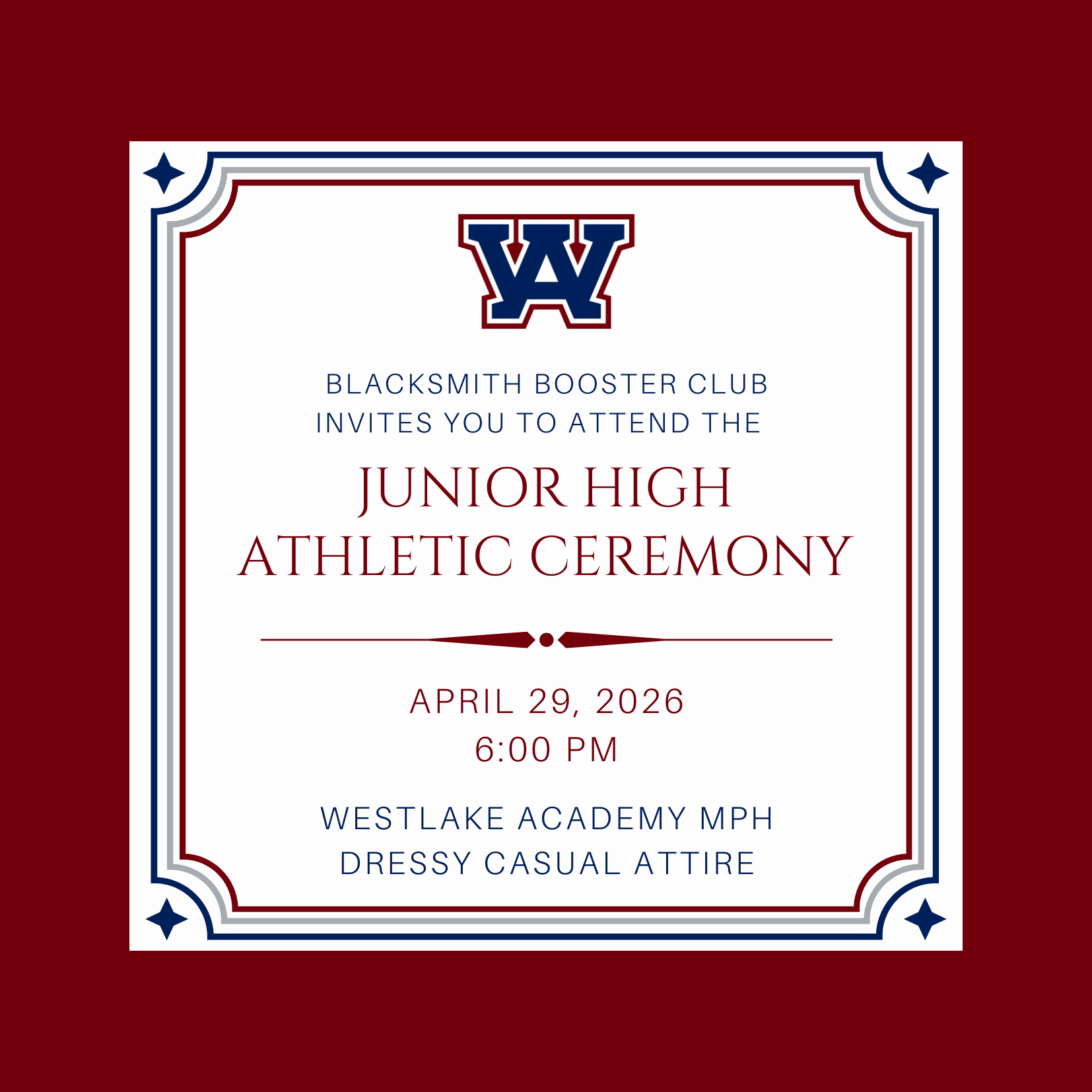 Apr 29 - Junior High Sports Banquet, 6:00 pm in the MPH