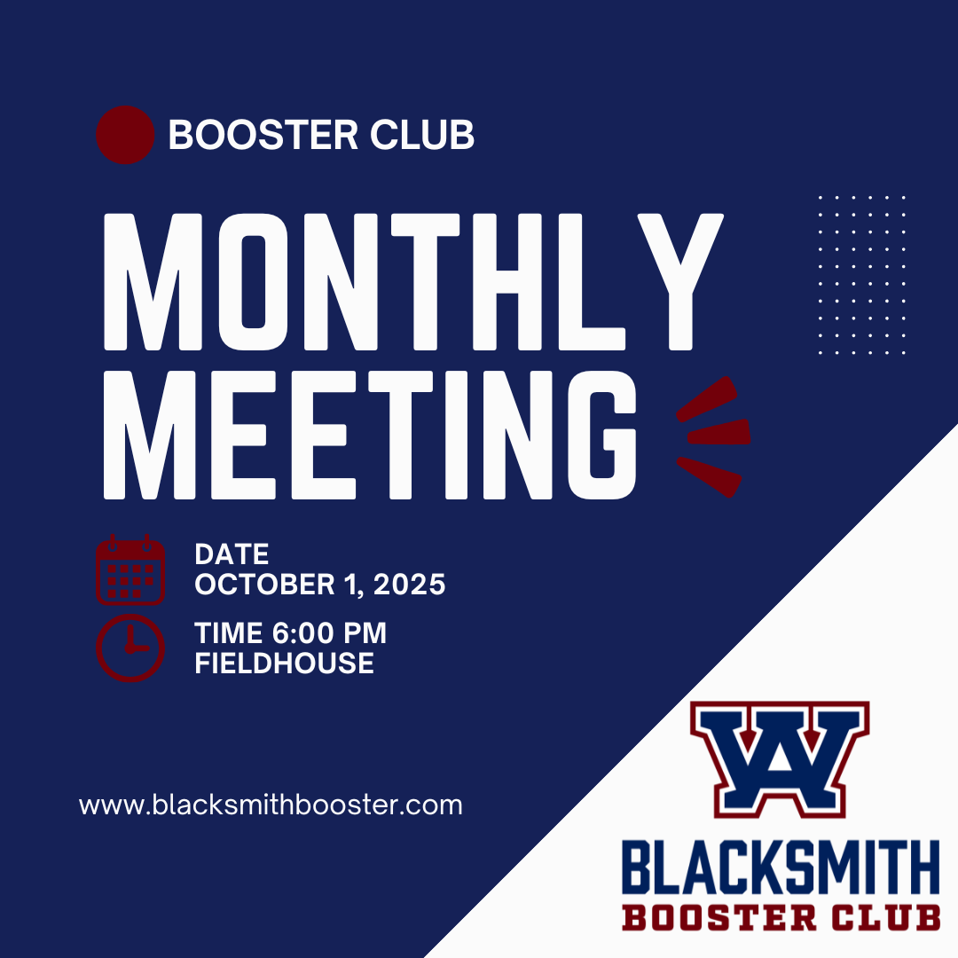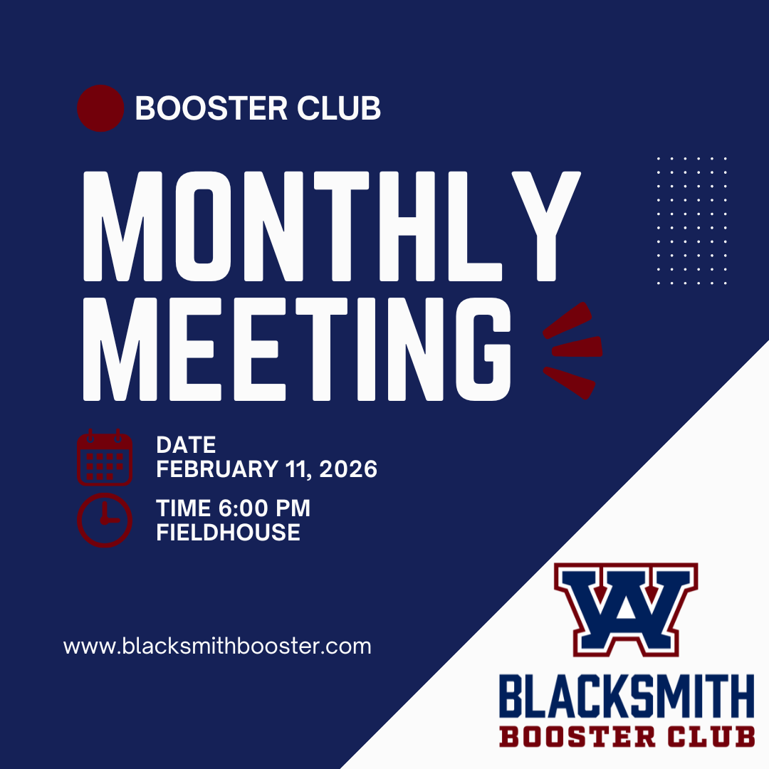 Booster Club meetings will take place in the Field House at 6:00pm. All members are welcome!